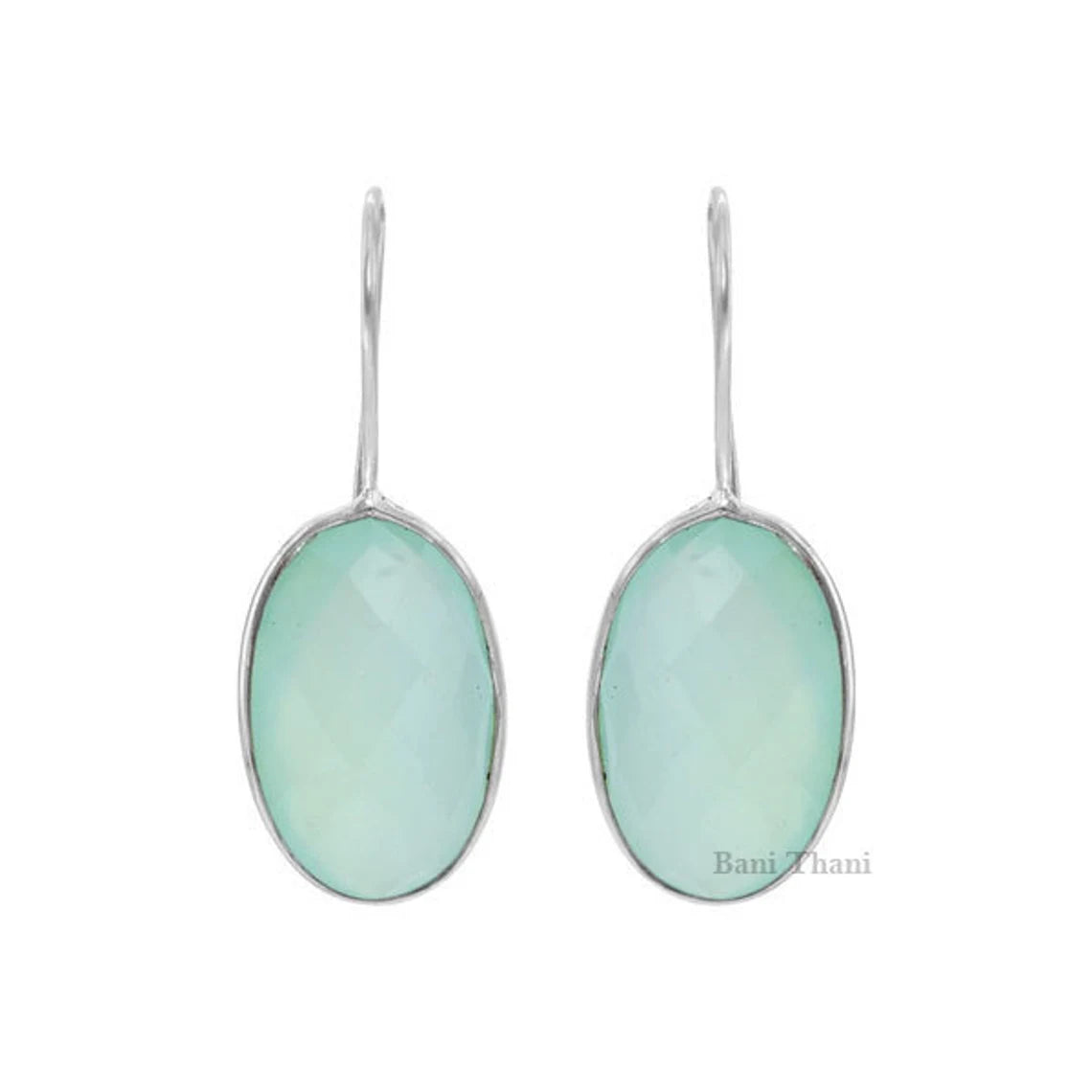 Aqua Chalcedony Dangle Earrings - Chalcedony Oval Gemstone Earrings - 925 Sterling Silver Earrings - Christmas Gift for Women - Gift for Her