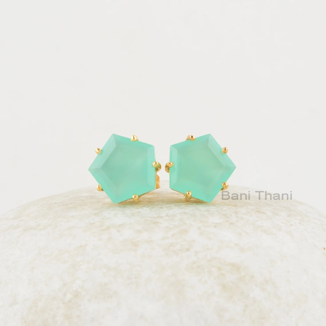 Aqua Chalcedony Studs Earrings - 925 Sterling Silver - Rose Gold Plated Studs - 11x11mm Prong Set Star - Gift For Her - Jewelry For Healing