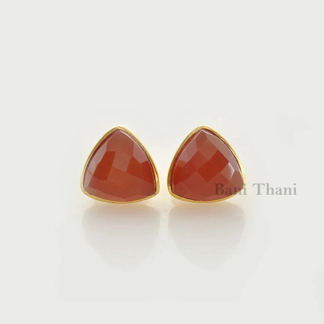 Fanta Chalcedony 9mm Trillion Gemstone Stud Earrings, 18k Gold Plated Sterling Silver Earrings, Earrings for Women, Christmas Gift Earrings