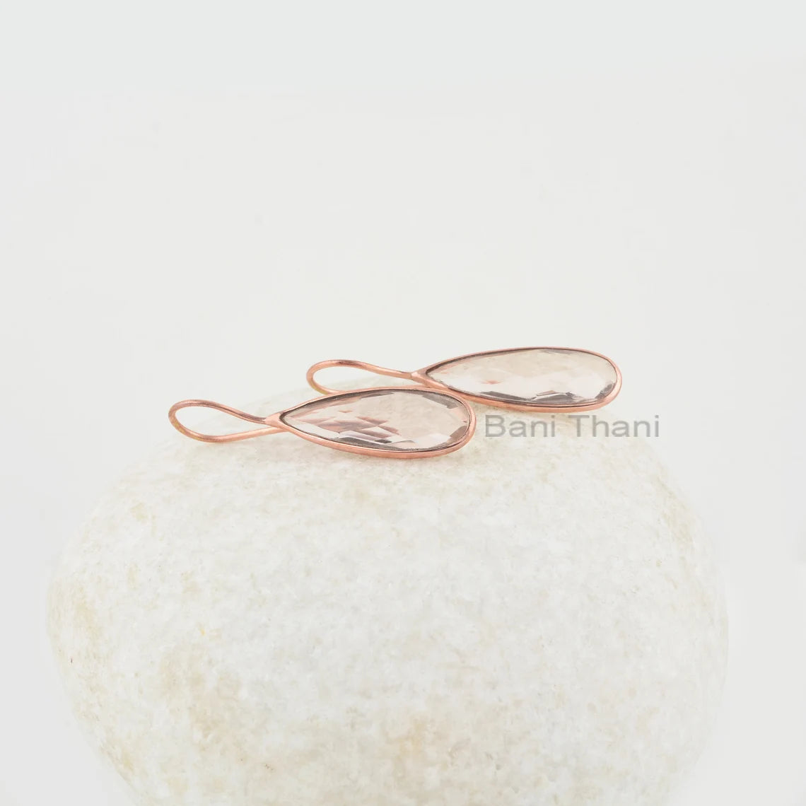 Morganite Earrings 8x25mm Pear Shape Rose Gold Silver Gemstone Earrings, Handmade Bezel Set Dangle Earrings, Wedding Jewelry For Girls