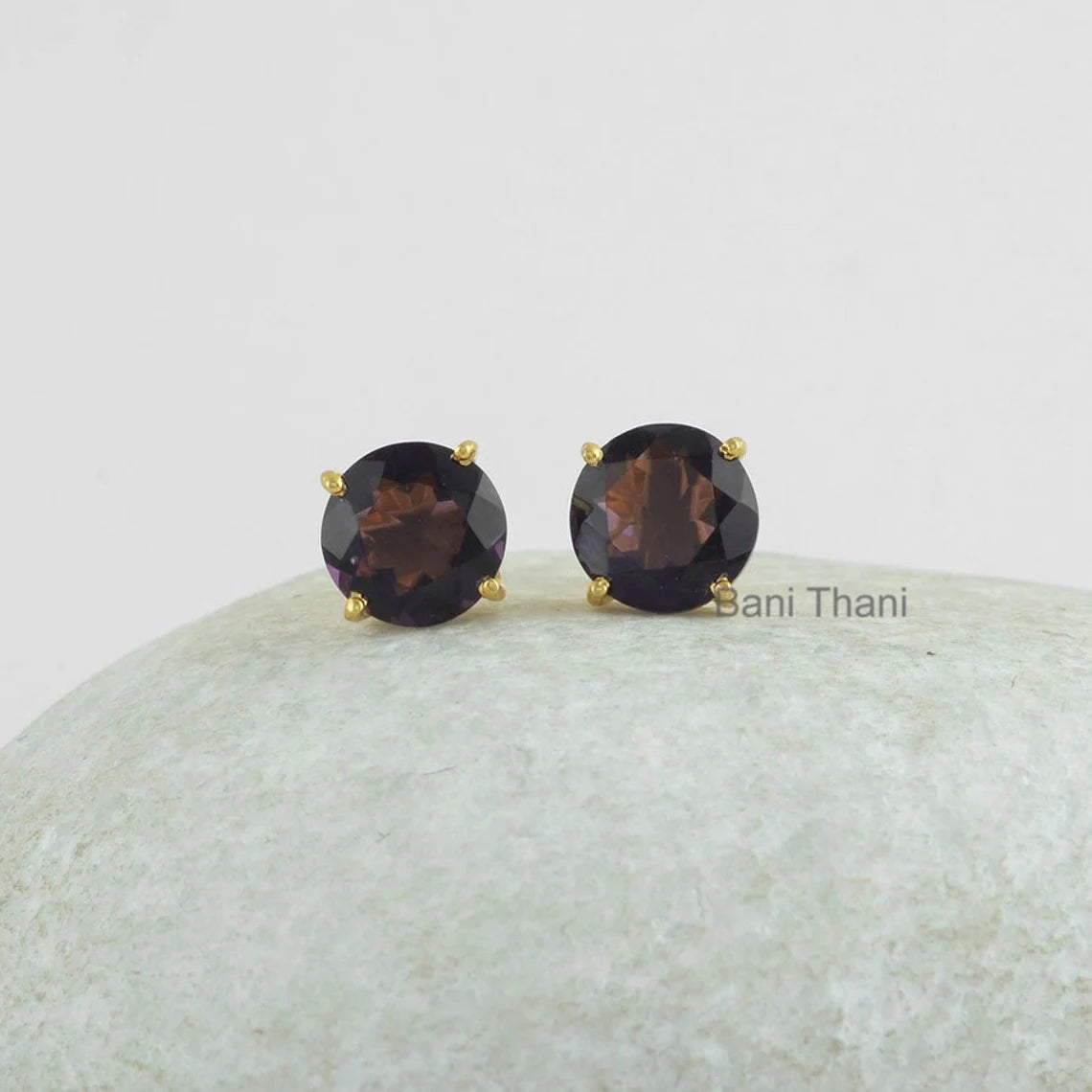 Gemstone Stud Earrings-Amethyst Quartz 10mm Round Earrings-Gold Plated 925 Sterling Silver Jewelry-Prong Set Earrings-Minimalist Earrings