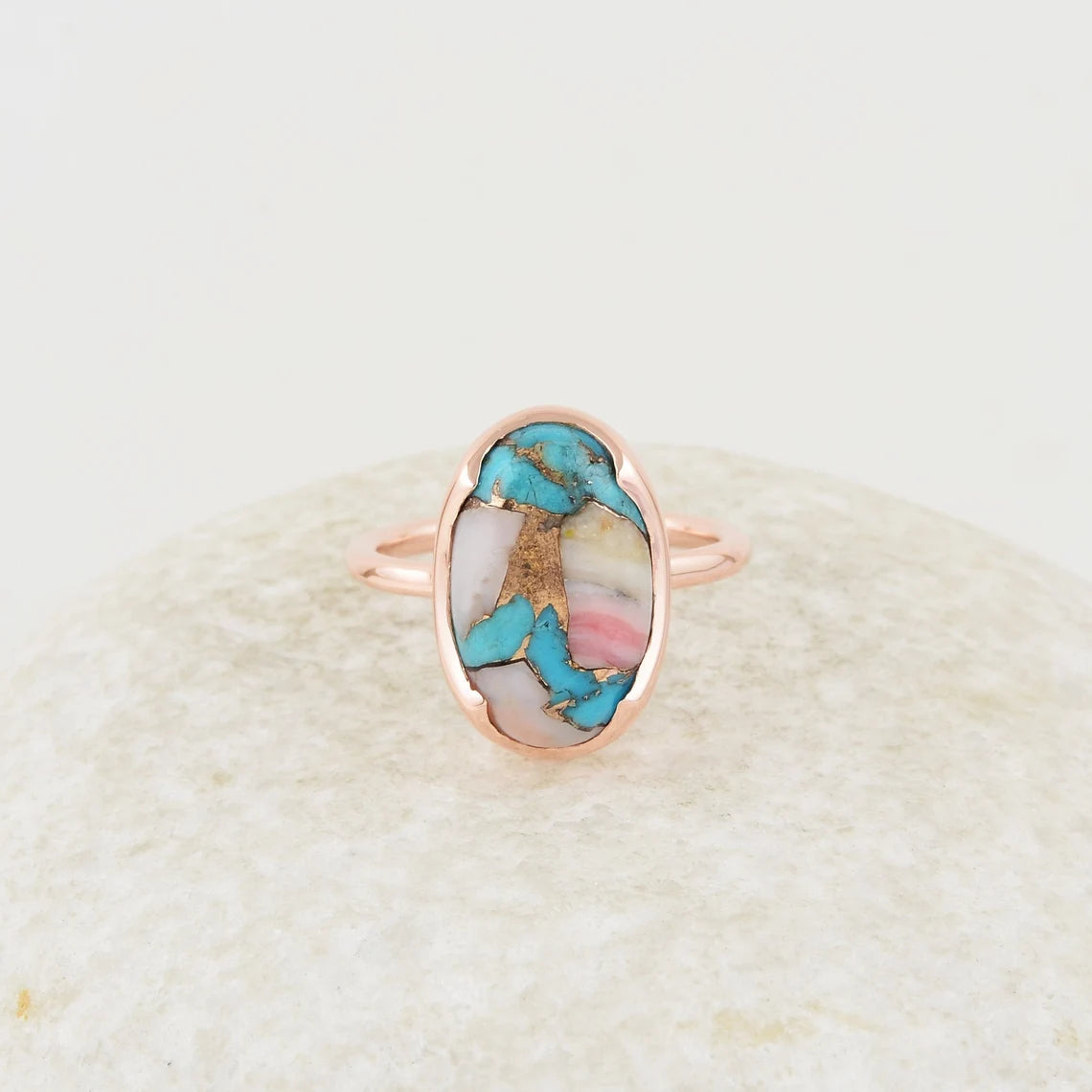 Stone Detail:- Pink Opal Copper Turquoise 10x16 mm Oval Shape