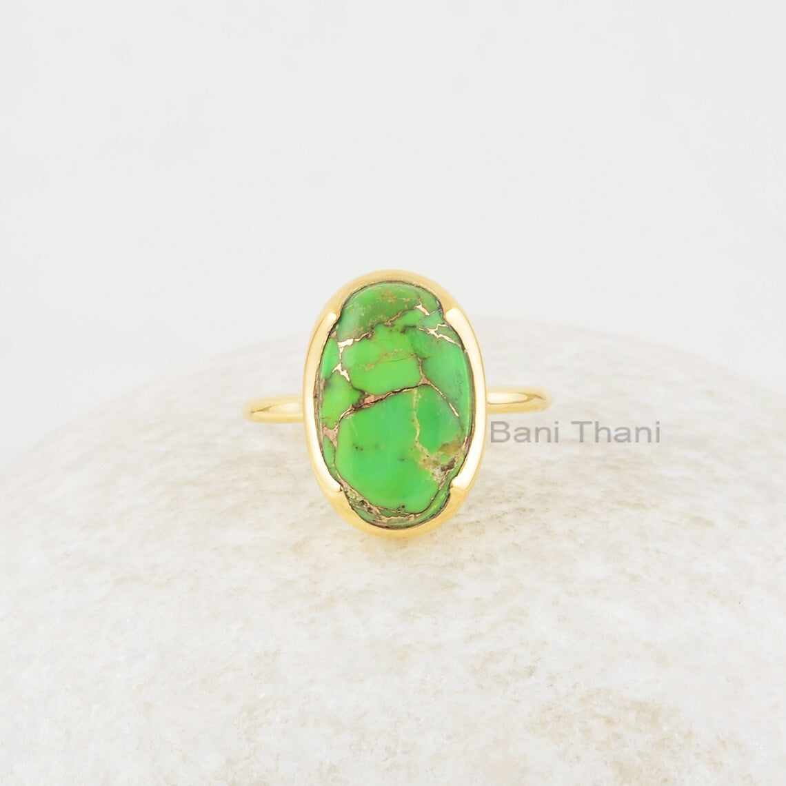Turquoise Ring - Sterling Silver Ring - 10x16mm Oval Gemstone - Gold Plated Ring - Handmade Jewelry - Gift for Mom - Green Turquoise Ring