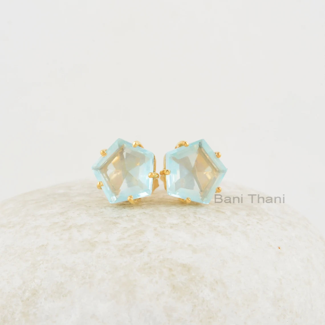 Aqua Quartz Studs 11x11mm Star Shape Gemstone Earrings, Aqua Quartz Gold Plated Silver Prong Set Studs Jewelry, Engagement Gift For Her