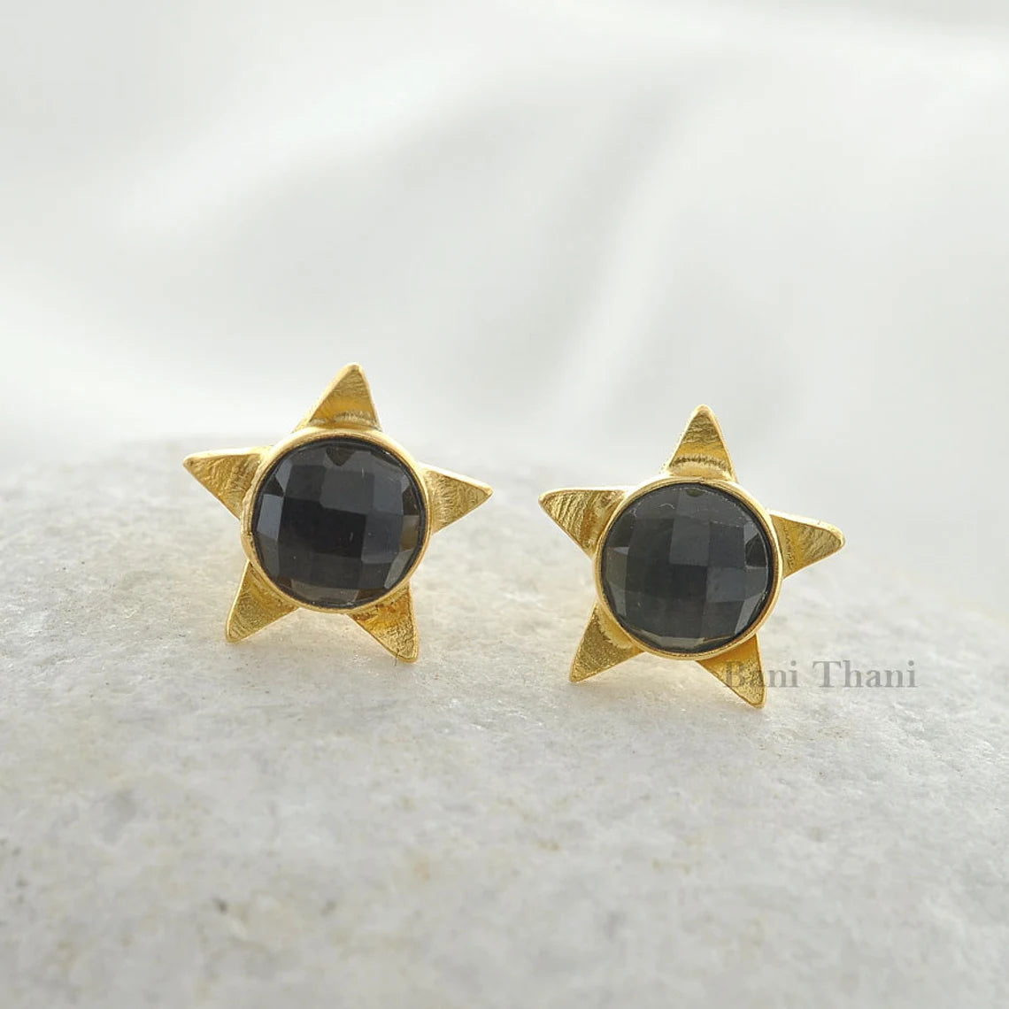 Smoky Quartz Stud Earring - Rose Gold Plated Studs - Round 8mm- 925 Sterling Silver - Trendy Jewelry - Jewelry For Writer - Gift For Women