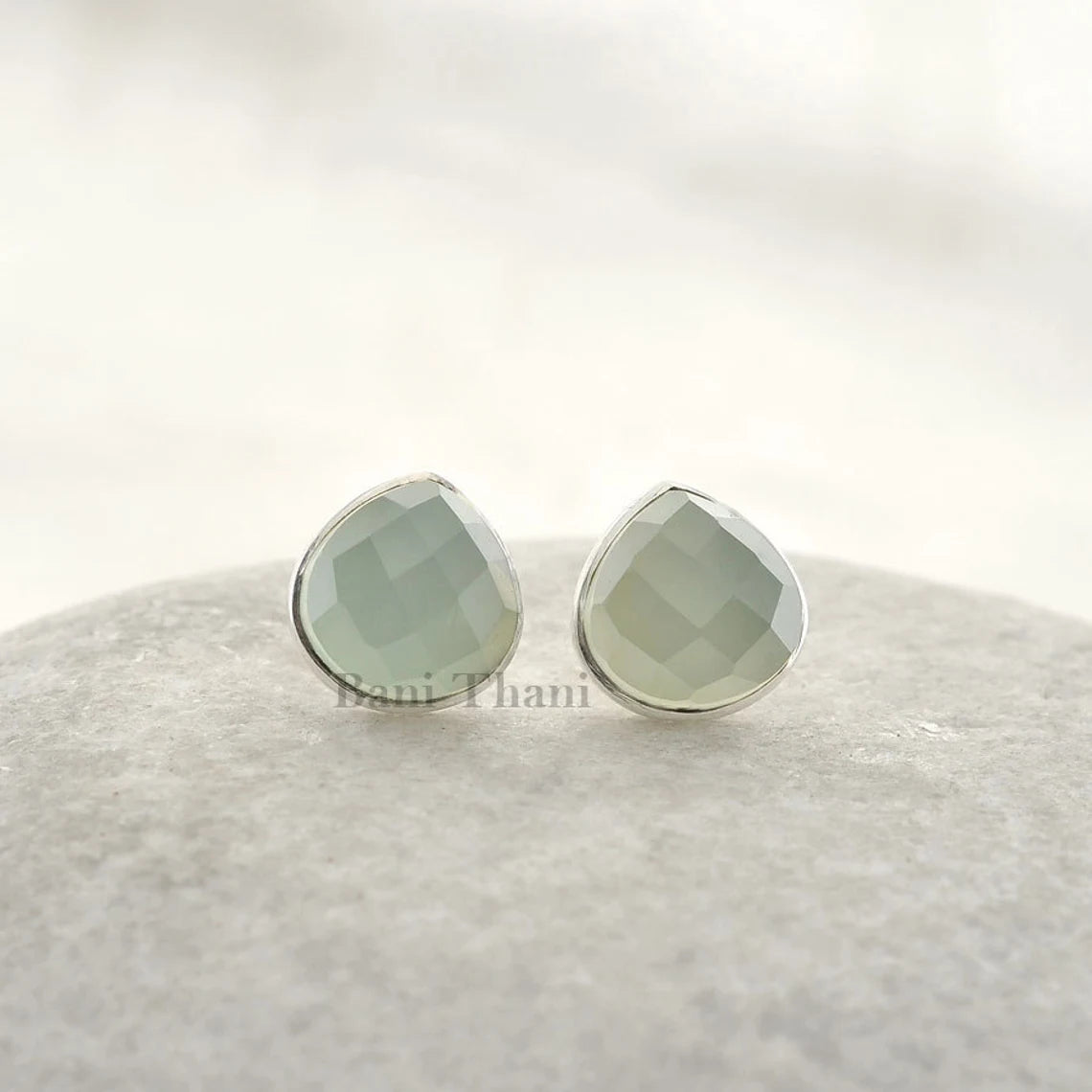Beautiful Aqua Chalcedony Faceted 7mm Heart Gemstone Stud Earrings, 925 Sterling Silver Stud Earrings, Womens Gift Earring, Christmas Gift