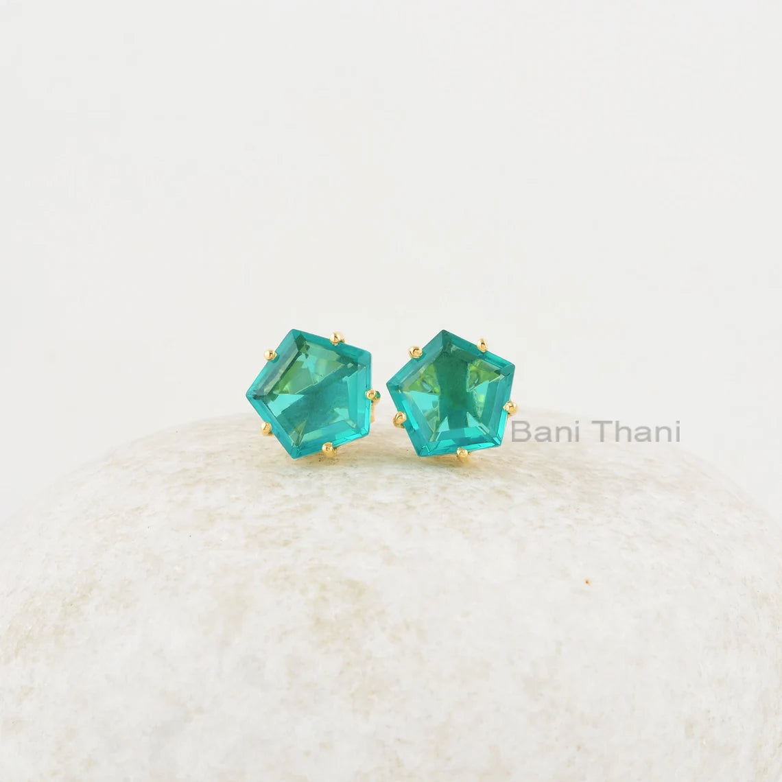 Elegant Teal Quartz Studs, Teal Quartz 11x11mm Silver Gemstone Earrings, Star Shape Quartz Gold Plated Studs Earrings, Studs For Girls