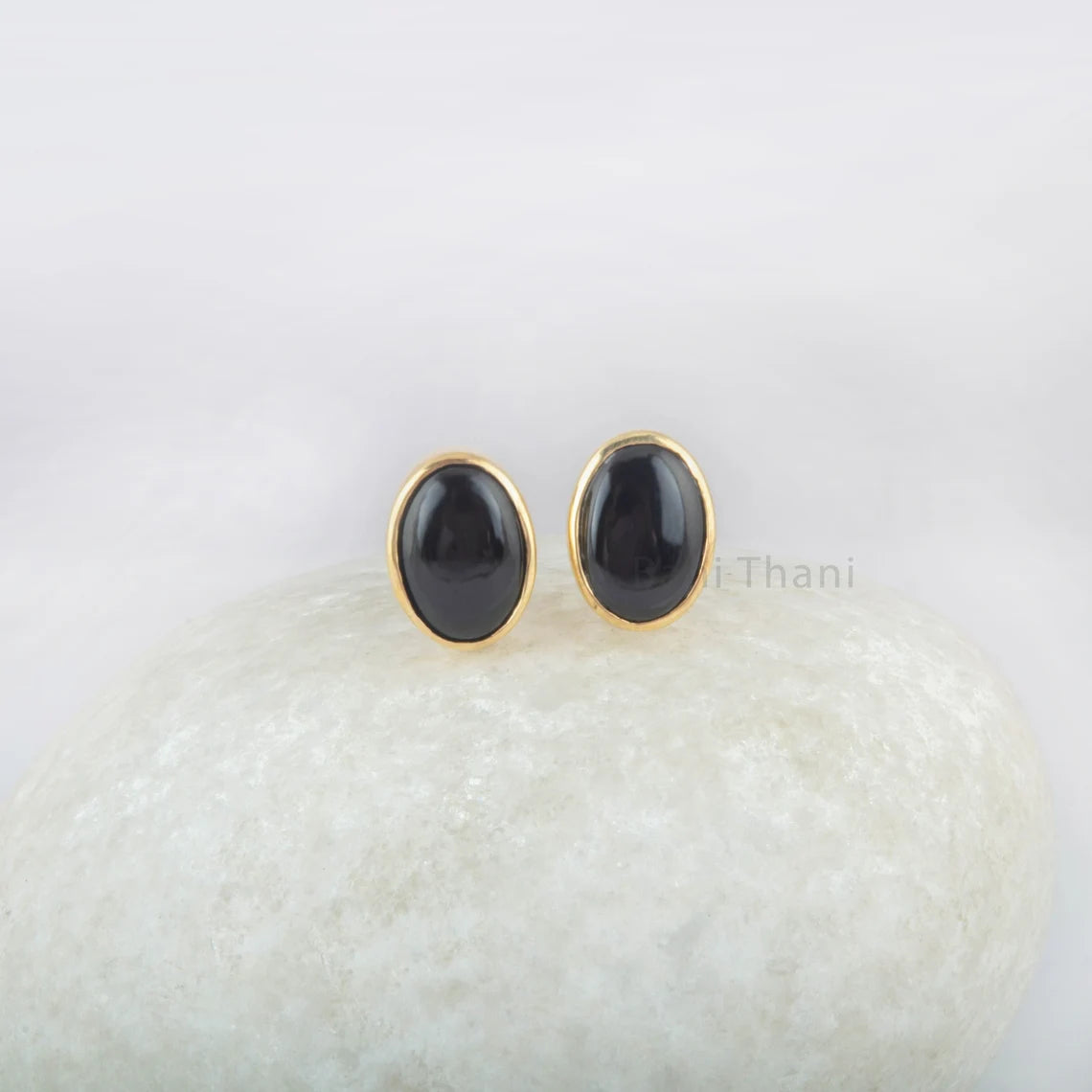Black Onyx Stud Earrings - 925 Silver 18k Gold Plated 10x12mm Oval Handmade Studs - Dainty Earrings - Gift For BFF - Jewelry For Graduate