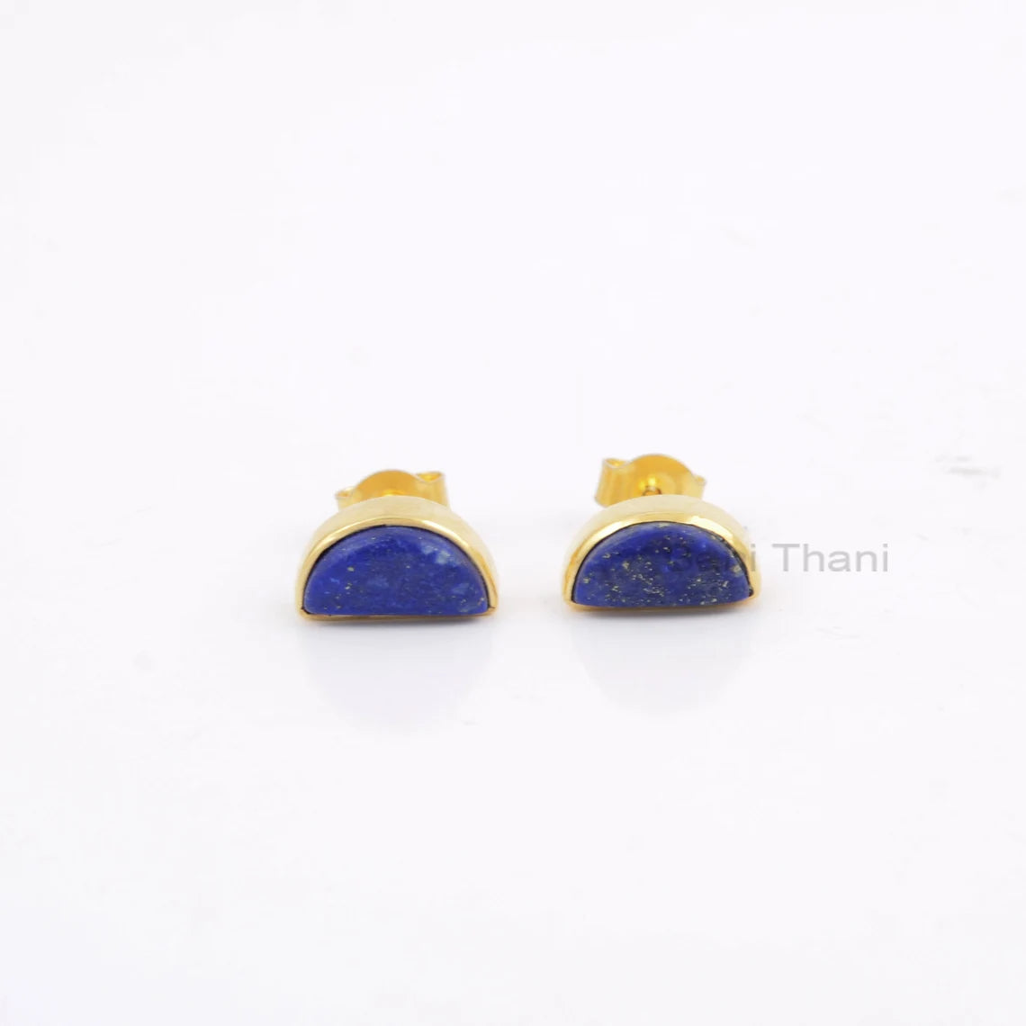 Cute Lapis Gemstone Stud Earrings, Lapis Lazuli Halfmoon Stud Earrings, 925 Sterling Silver Earring, Engagement Gift Earring, Gift For Her