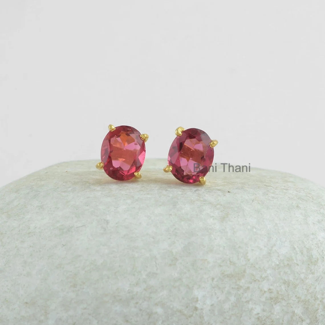 Pink Tourmaline Quartz Faceted Stud Earrings - 925 Sterling Silver - 8x10mm Oval - Healing Jewelry - Gift For Healing - Jewelry for Date