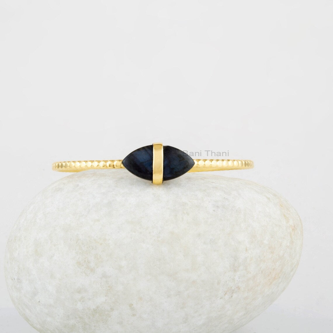 Labradorite Gemstone Bracelet - Gold Plated Cuff Bangle - 925 Sterling Silver - 8x16mm Marquise Bangle - Wedding Gift Bangle - Gift for Her