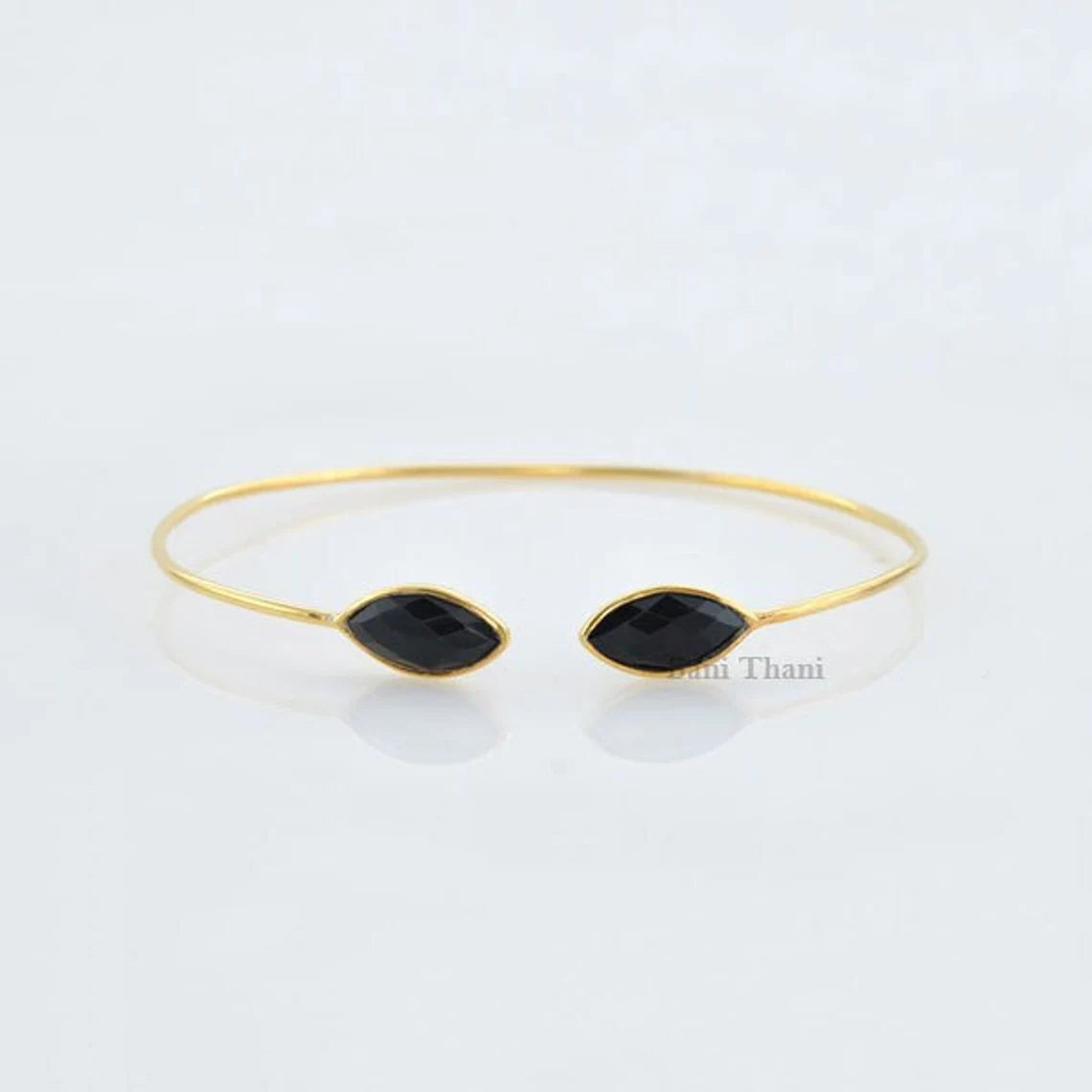 Adjustable Bracelet-Black Onyx Marquise 7x14mm Gemstone Cuff Bracelet-Micron Gold Plated Sterling Silver Bangle-Bangle Bracelet-Boho Jewelry