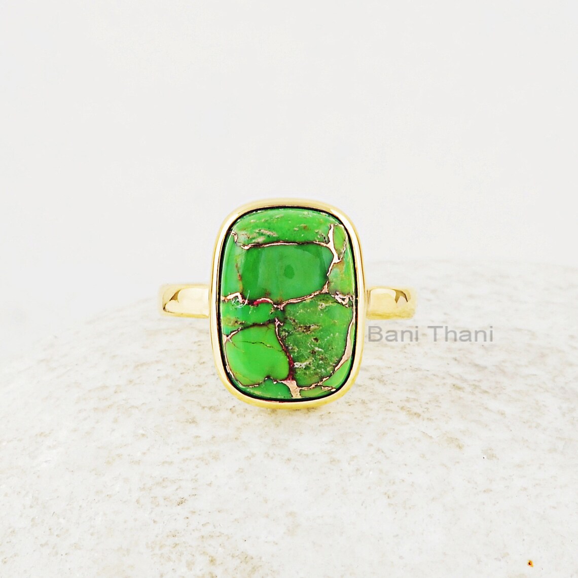 Turquoise Ring - Solid Silver - Green Copper Turquoise Ring - 10x14mm Gold Plated Ring - Artisan Jewelry - Gift for Xmas - Jewelry for Mom