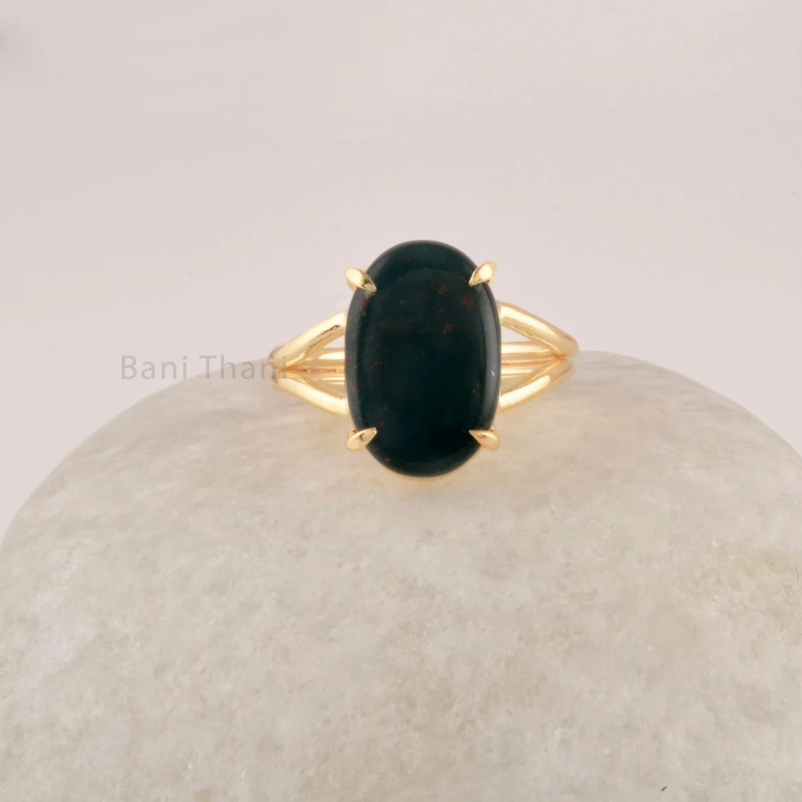 Bloodstone Ring - Pure Silver - Handcrafted Gemstone Ring - Trendy Jewelry - 18k Gold Plated Prong Set Jewelry For Artist - Gift For Women