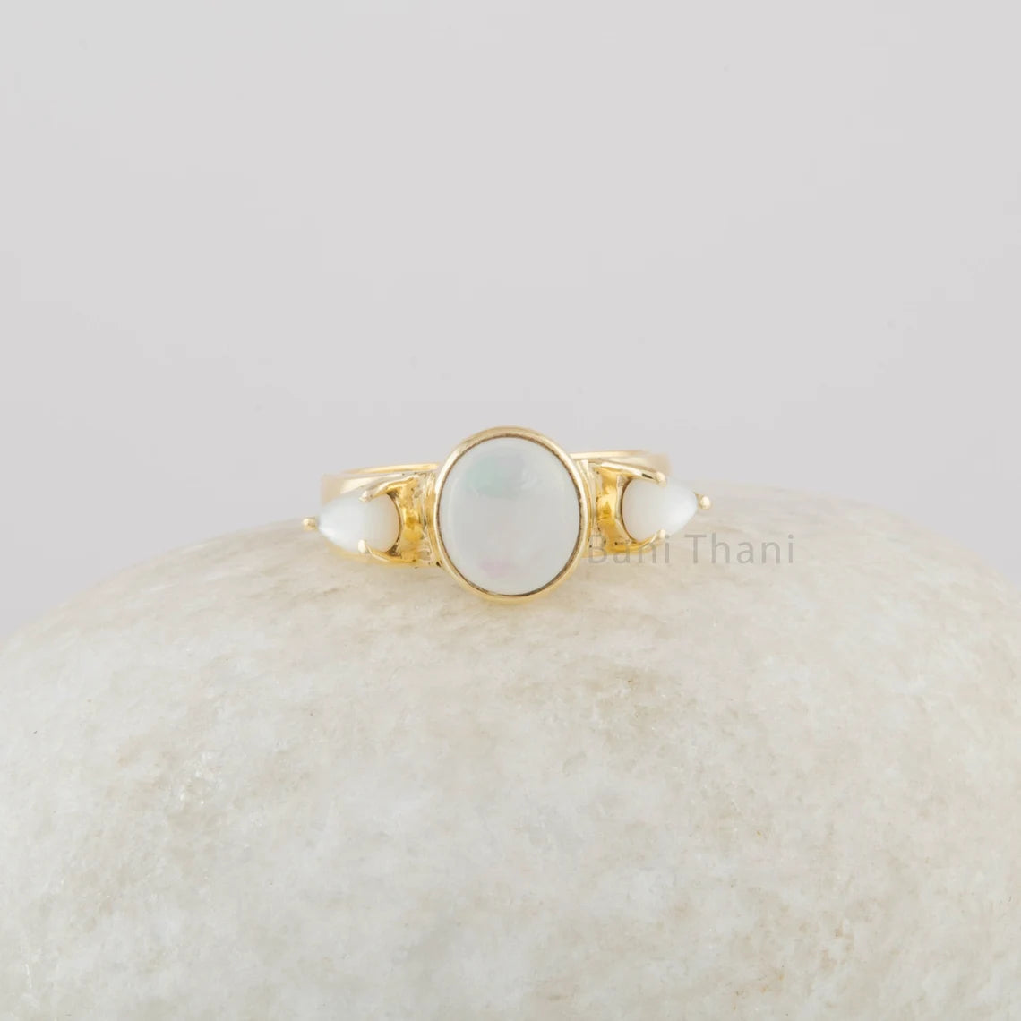 Pearl Gemstone Ring - Gold Plated Silver Ring - Mother Of Pearl Multistone Ring - Jewelry Wholesaler- Christmas Gift For Women