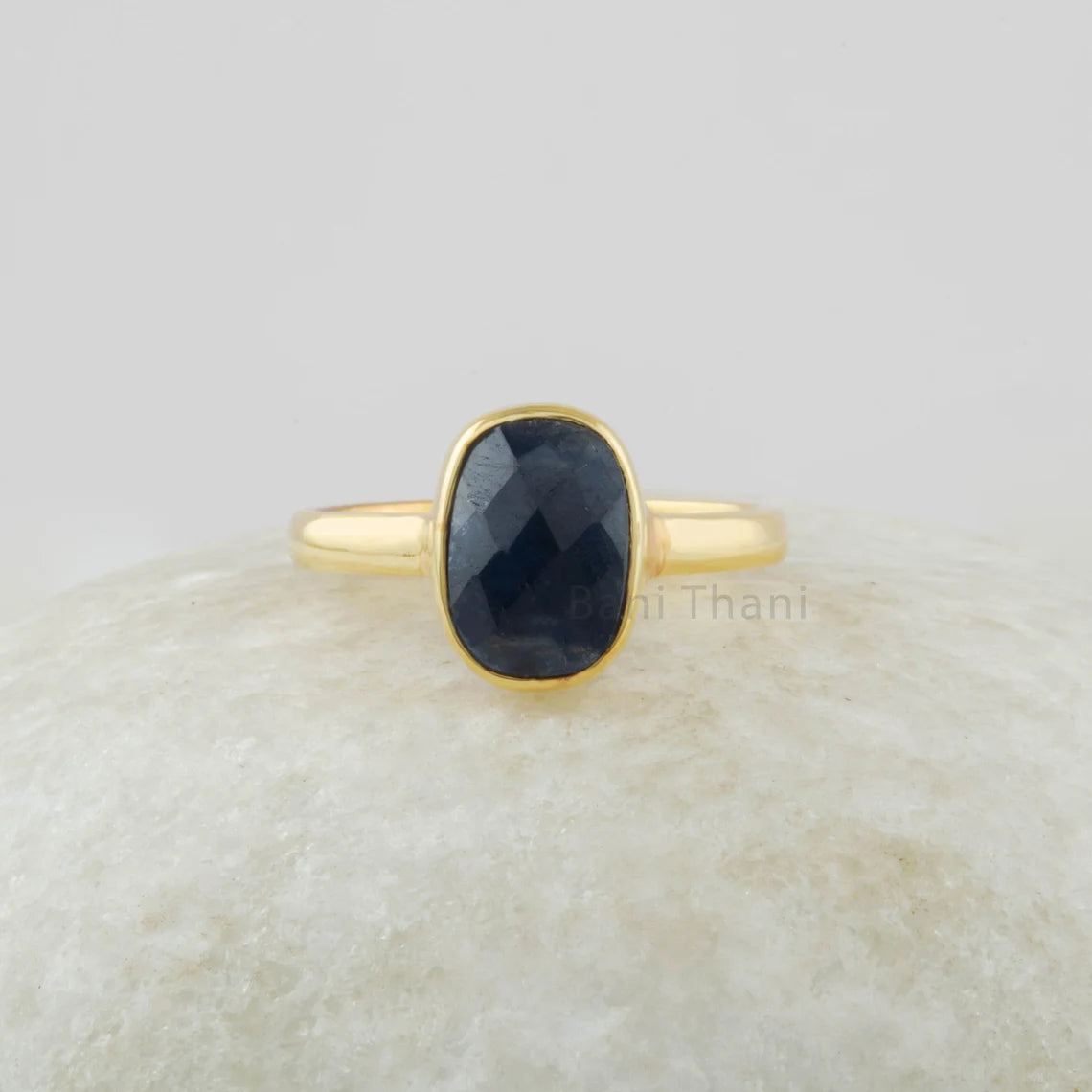 Blue Sapphire Gemstone Ring - Sterling Silver Cushion Ring - Natural Sapphire Gold Plated Bezel Ring - Handmade Silver Ring- Jewelry for Mom