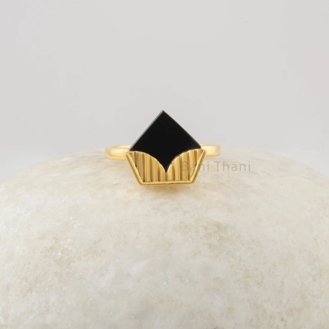 Black Onyx Ring Solid Silver 18k Gold Plated Ring - 11x12mm Flat Diamondd - Fashion Jewelry - Jewelry For Inspiration - Gift for Birthday