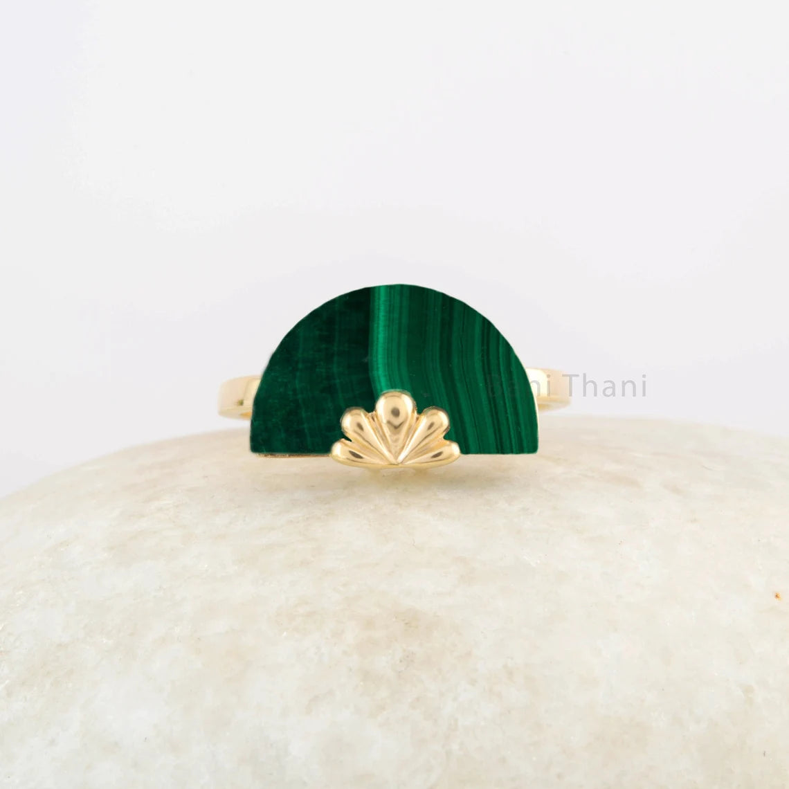 Flower Gemstone Ring - Malachite 10x16mm Half Round Silver Ring - Statement Ring - Christmas Gift for Mother - Big Stone Silver Ring Jewelry
