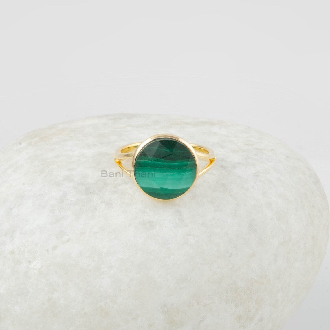 Malachite Doublet Gemstone Ring- Malachite Ring - Handmade Jewelry - 925 Silver Gold Plated Ring - Birthday Gift - Jewelry for Womens -12mm
