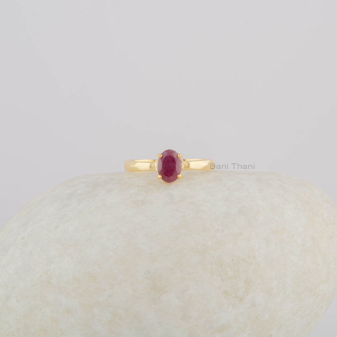 925 Sterling Silver Ring - Genuine Ruby Gemstone Ring - Natural Stone Jewelry - Gold Plated Ring - Finger Ring - Womens Ring - Gift for Her