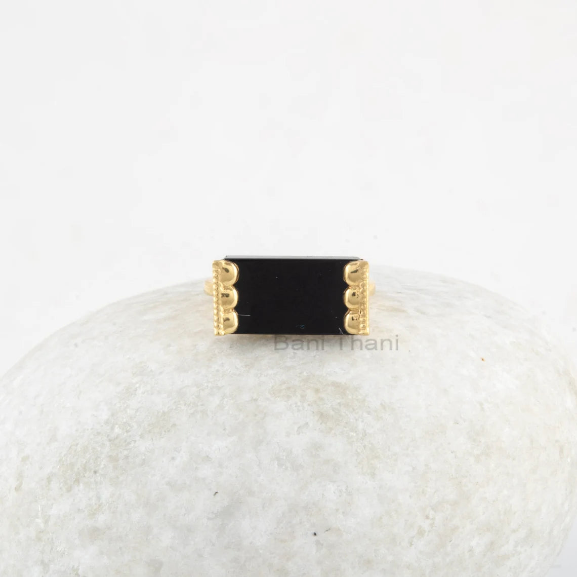 Flat Gemstone Ring - Black Onyx Silver Ring - Rectangle Ring - 925 Sterling Silver Ring - Gold Plated Ring - Wedding Band - Jewelry for Prom