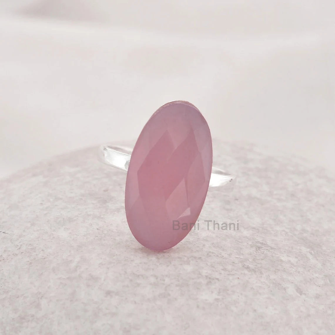 Pink Chalcedony Oval Gemstone Ring - 925 Sterling Silver Ring - Handmade Wedding Jewelry - Promise Ring - Rings for Women - Bridal Jewelry