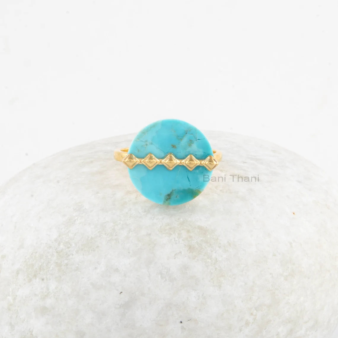 Turquoise Ring - Round Arizona Turquoise Gemstone Ring - Gift for Her - Gold Plated Ring - 925 Silver Ring - Cocktail Ring - Handmade Ring
