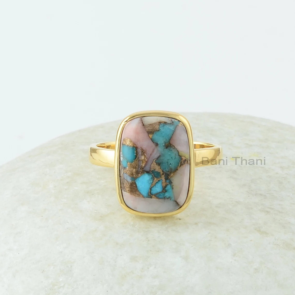 Turquoise Ring - Sterling Silver Ring - 10x14mm Gemstone Jewelry - Gift for Wife - Jewelry for Loved ones - Pink Opal Turquoise Copper Ring