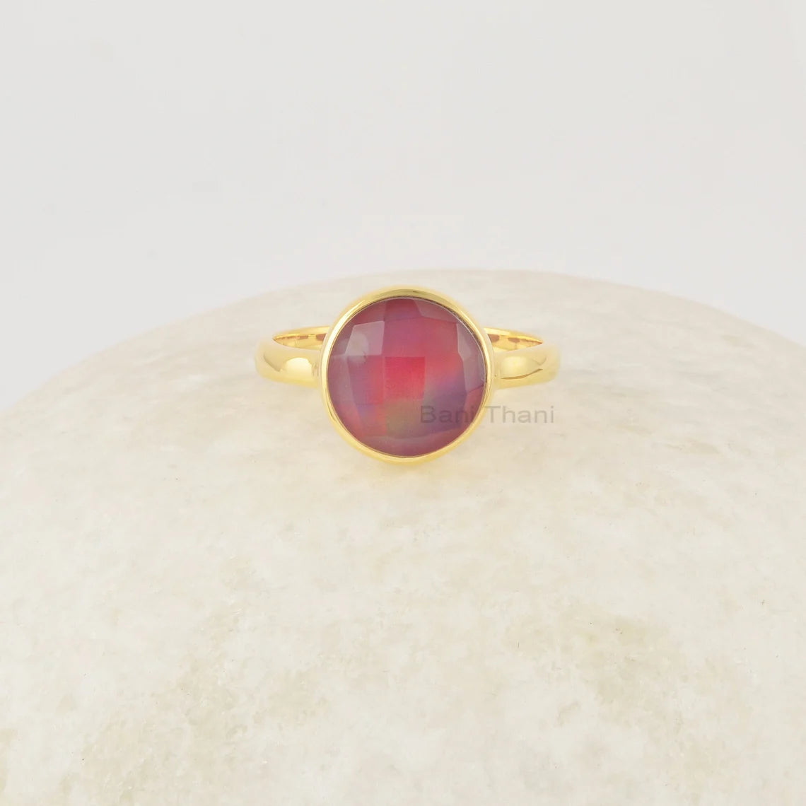 Aurora Round Cut Ring, Red Aurora Opal Ring, Handmade Sterling Silver Ring, Everyday 18K Gold Plated Minimalist Gemstone Ring For Mom