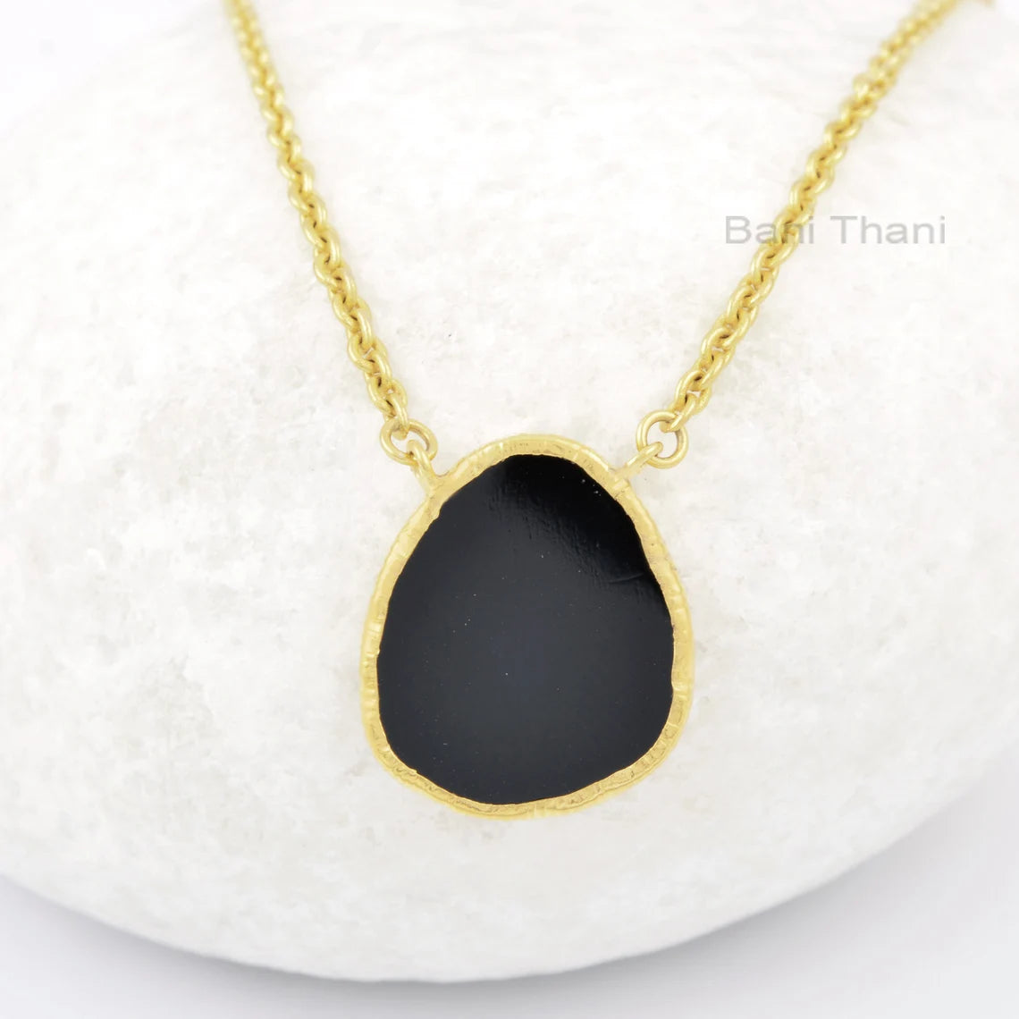 Black Onyx Necklace - 925 Silver - Gemstone Pendant Necklace - 17x20mm Flat Nugget - Healing Jewelry - Gift For Healing - Jewelry for Date