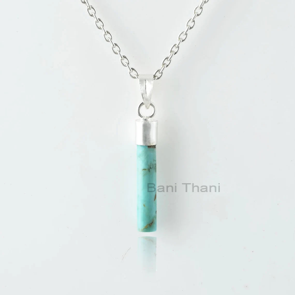 Arizona Turquoise Necklace - 925 Silver - Handmade Necklace - 4x22mm Long Stick - Gemstone Jewelry - Gift For Nurse - Jewelry For Birthday