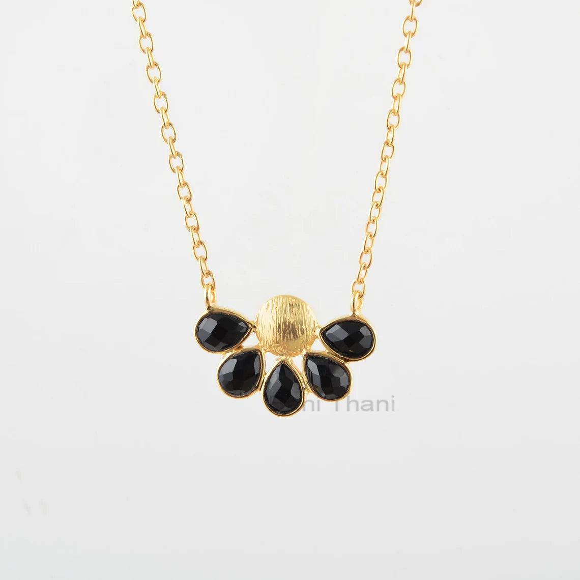 Black Onyx Gemstone Necklace, 18k Gold Plated Elegant Necklace, Onyx 5x7mm Pear Gemstone Silver Necklace, Women's Gift, Valentine's Gift