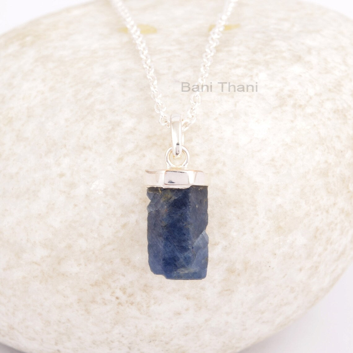 Raw Blue Sapphire Necklace - Sterling Silver - Gemstone Pendant Necklace - Multi Stone Jewelry - Gift For Graduate - Jewelry For Inspiration