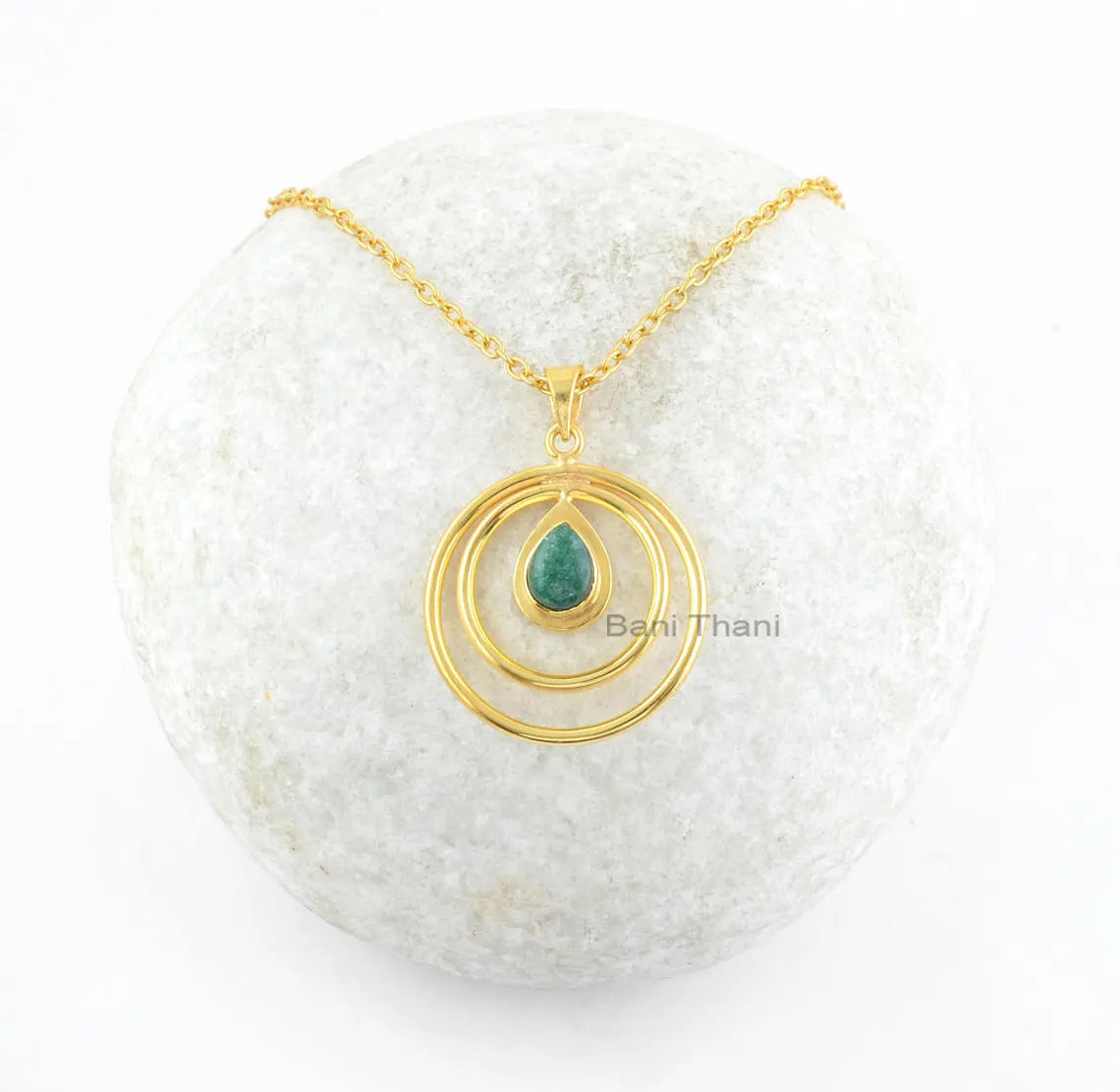 Green Aventurine Necklace - Rose Gold Plated Necklace - Pear 6x8mm - Pure Silver - Statement Jewelry - Jewelry For Student - Gift For Her