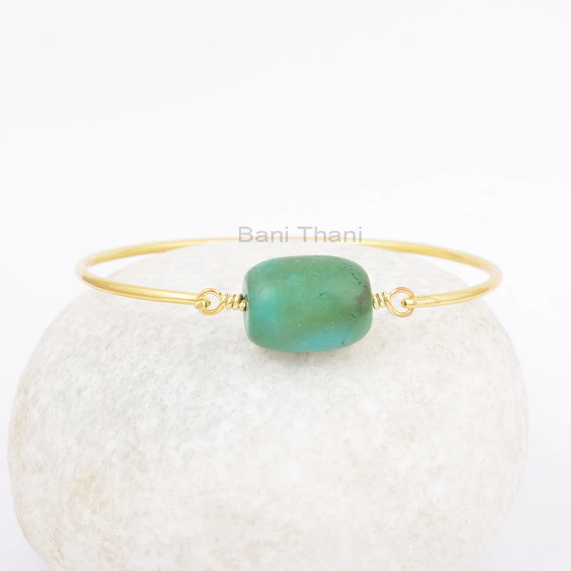 Tibetan Turquoise Bangle - 925 Silver - Gold Plated Bracelet - 15x19mm Roundel Bead - Elegant Jewelry - Gift For Date - Jewelry For Bride