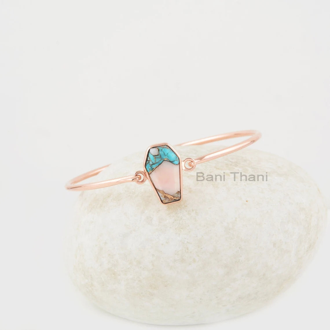 Pink Opal Turquoise Bangle - Gold Plated Bracelet - 925 Silver - 10x17mm Coffin - Fashion Jewelry - Jewelry For Prom - Gift For Bridesmaid