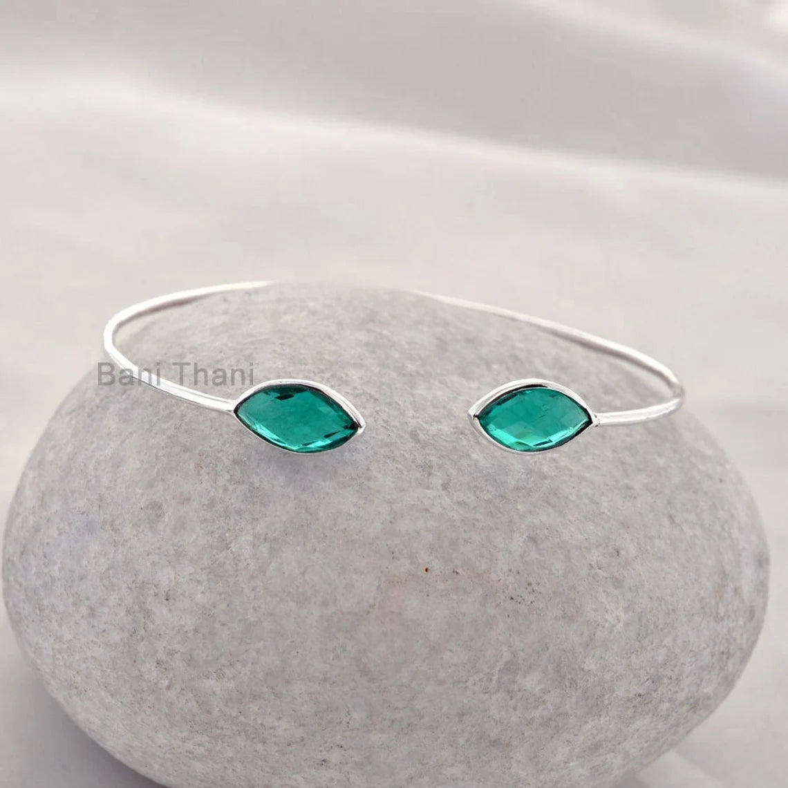 Teal Quartz Bangle - Gemstone Bracelet - 7x14mm Marquise - Sterling Silver - Elegant Jewelry Bangle - Jewelry For Lover - Gift For Student