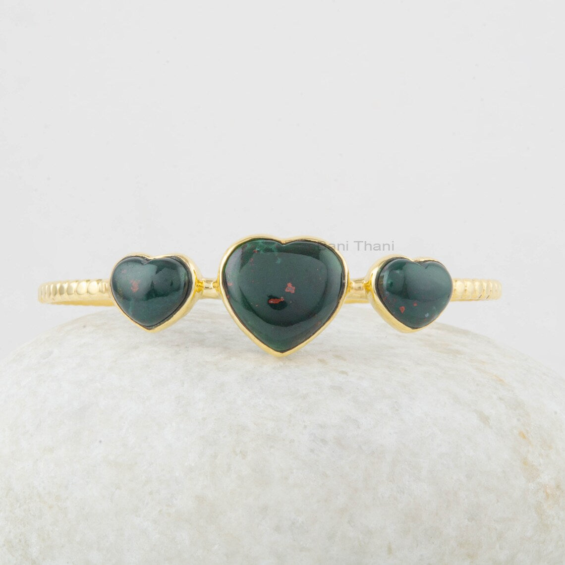 Heart Bangle - Gemstone Cuff Bracelet - Bloodstone Bangle - 925 Solid Silver Bracelet - Gold Plated - Gift for Birthday - Jewelry for Ladies