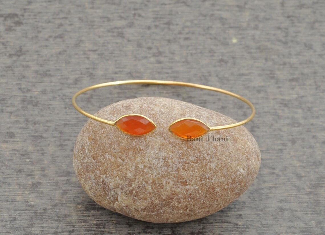 Chalcedony Cuff Bracelet-Fanta Chalcedony 7x15mm Marquise Gemstone Cuff Bangle-Christmas Gift-Sterling Silver Gold Plated Bangle Bracelet