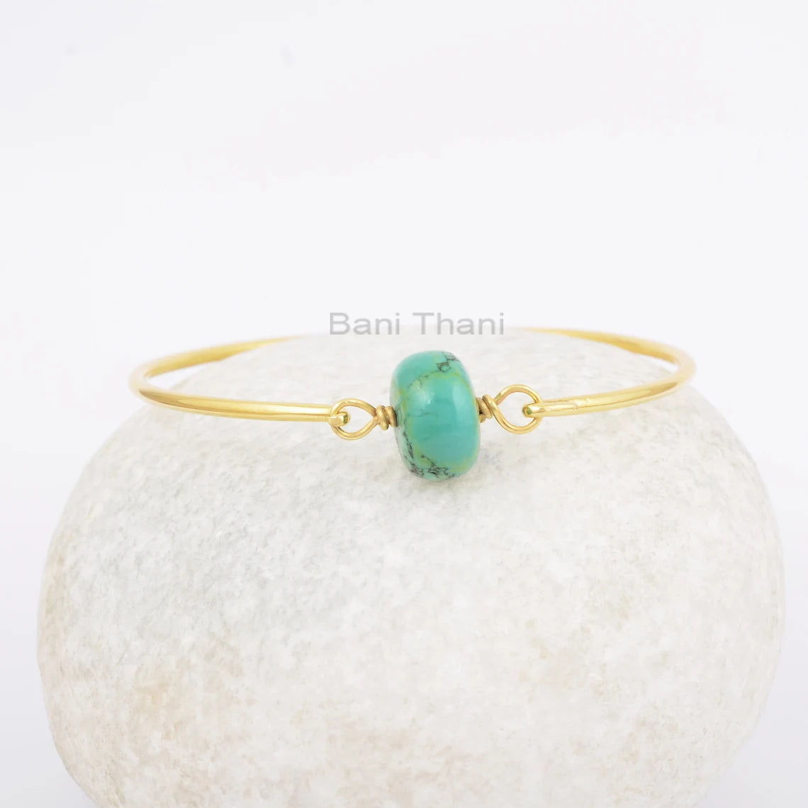 Tibetan Turquoise Bangle - Handcrafted Bracelet - Pure Silver - 9x14m Roundel Bead - Gemstone Jewelry - Jewelry For Wife - Gift For Yoga