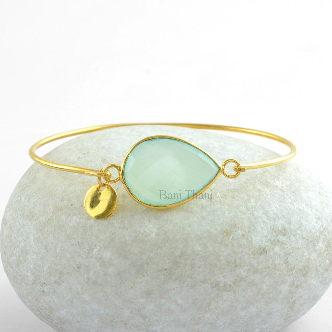 Aqua Chalcedony Pear Gemstone Bracelet - Charm Bracelet - 18k Gold Plated 925 Sterling Silver Bangle - Wedding Gift Bracelet - Gift for Her