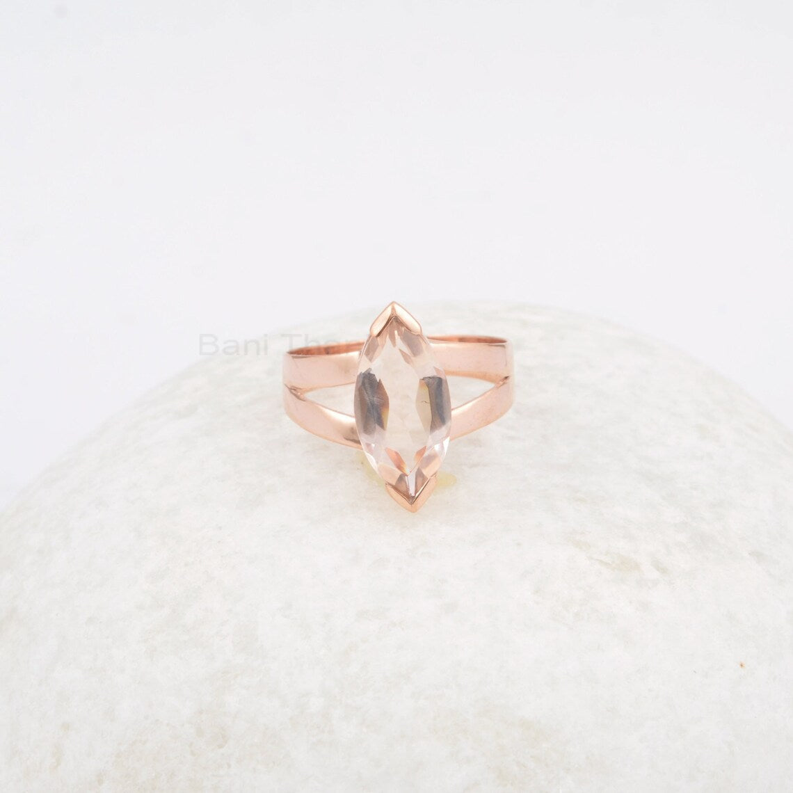 Elegant Marquise Ring, Rose Gold Plated Morganite 8x16mm Gemstone Ring, 925 Sterling Silver Handmade Ring, Dainty Ring, Promise Ring Jewelry