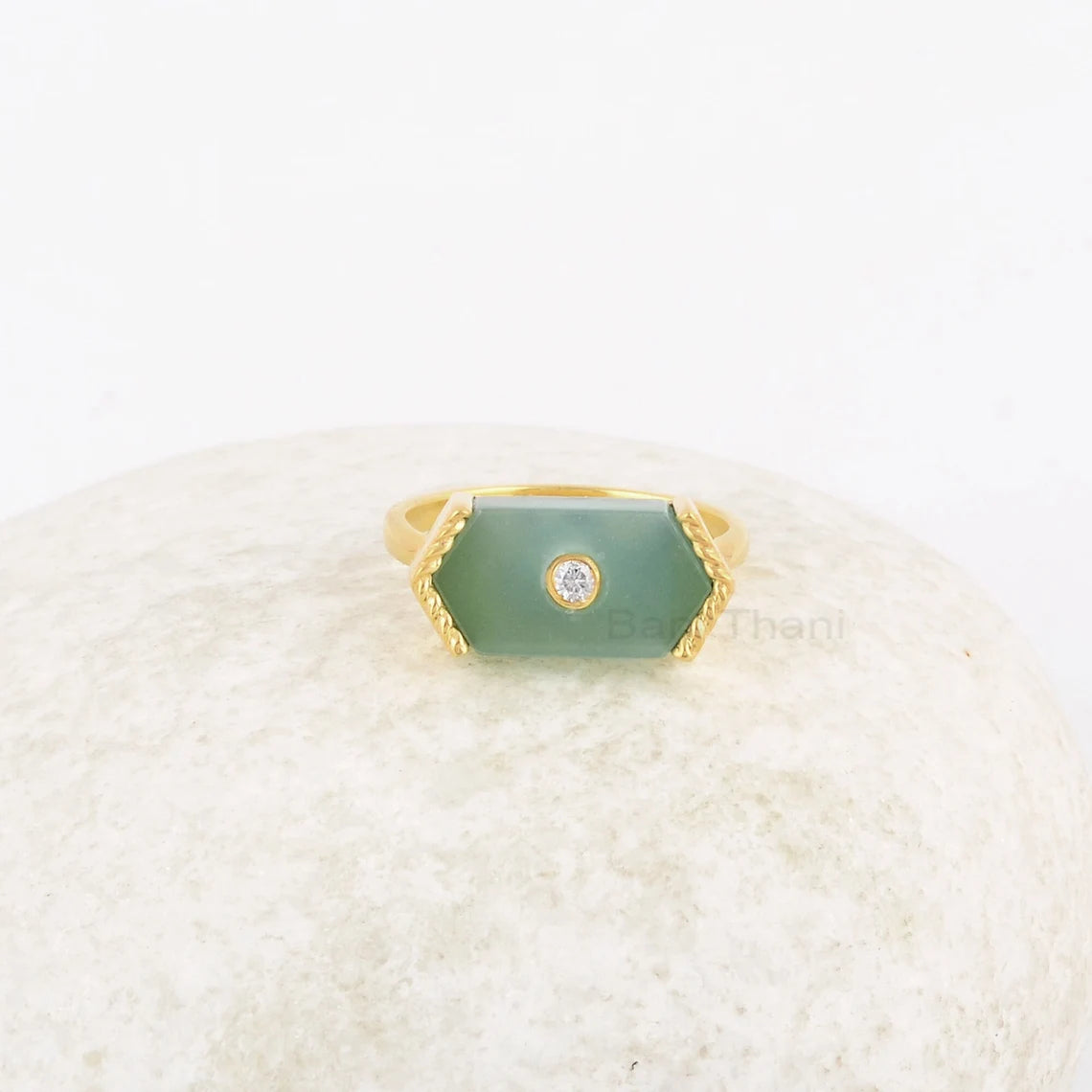 Aqua Chalcedony Ring - Sterling Silver - Gold Plated Jewelry - 8x15mm Hexagon Ring- Gemstone Ring - Jewelry For Women - Gift For Daughter