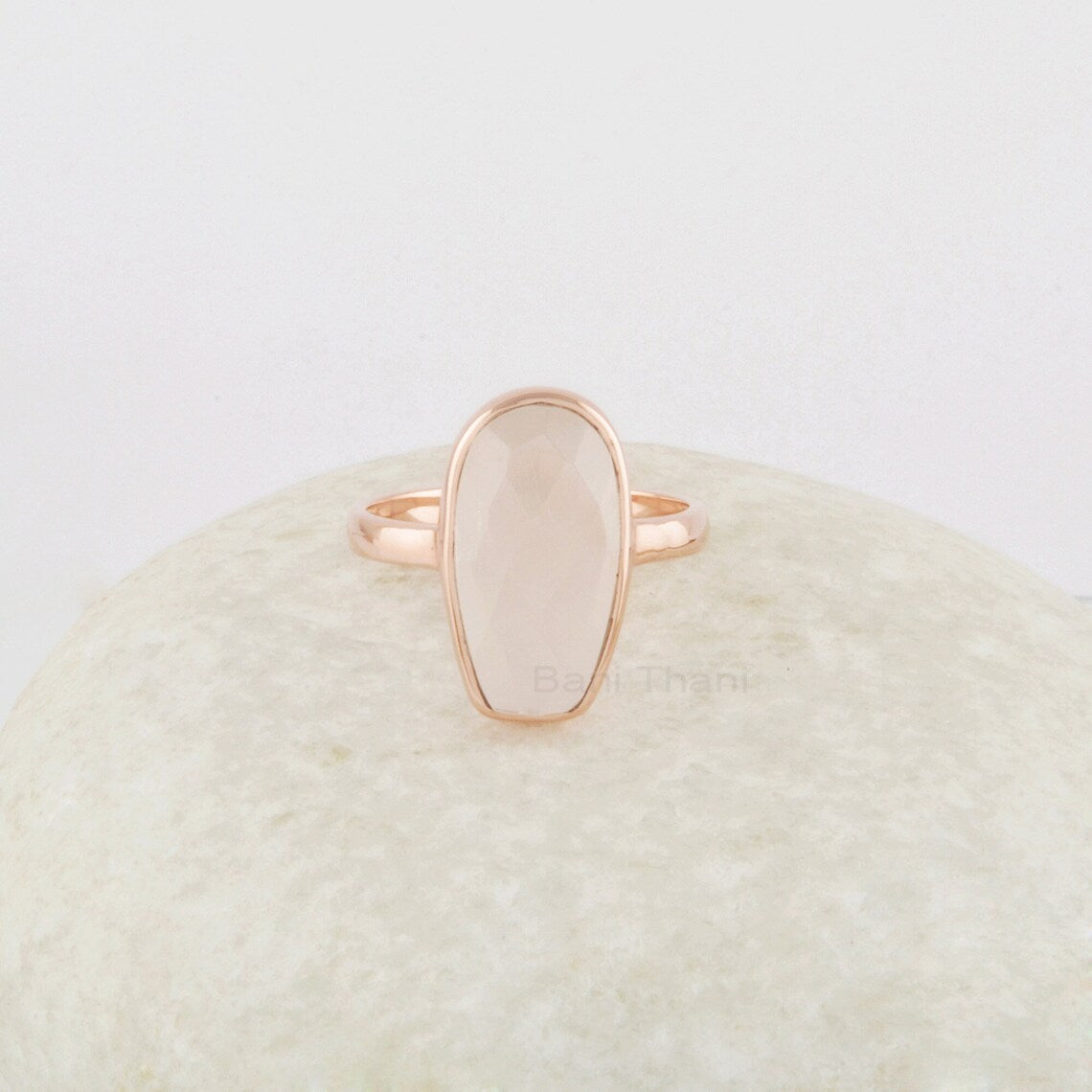 Morganite Ring, 16x8mm Coffin Gemstone Ring, Boho Sterling Silver Ring For Women, Handmade 18k Gold Plated Ring, Dainty Simple Ring For Her
