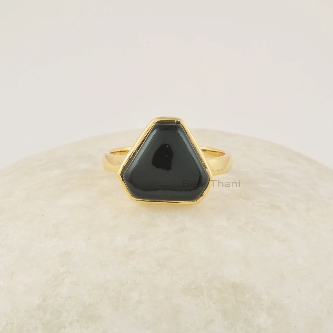 Black Onyx Ring, 925 Sterling Silver Ring, Vintage Birthstone Jewelry, Black Gemstone Gold Ring, 18k Gold Plated Silver Ring For Engagement