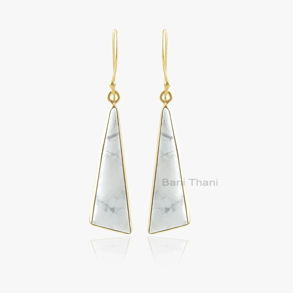 White Howlite Dangle Earrings-White Howlite 11x35mm Fancy Long Gemstone Earrings-Silver Earrings-Howlite Earrings-Gift for Bride