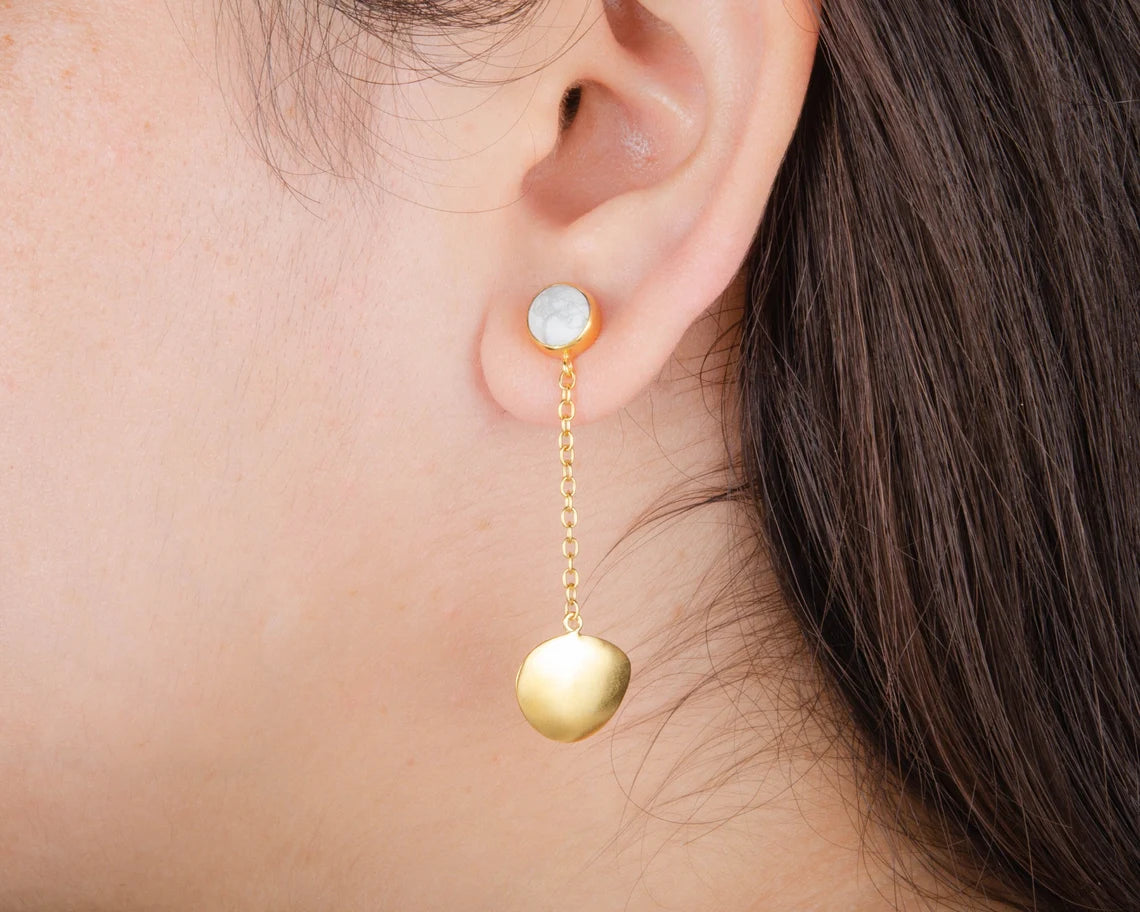 White Howlite Dangle Earrings - White Howlite 7mm Fancy Long Gemstone Earrings - 925 Silver Earrings - Howlite Earrings - Gift for Bride