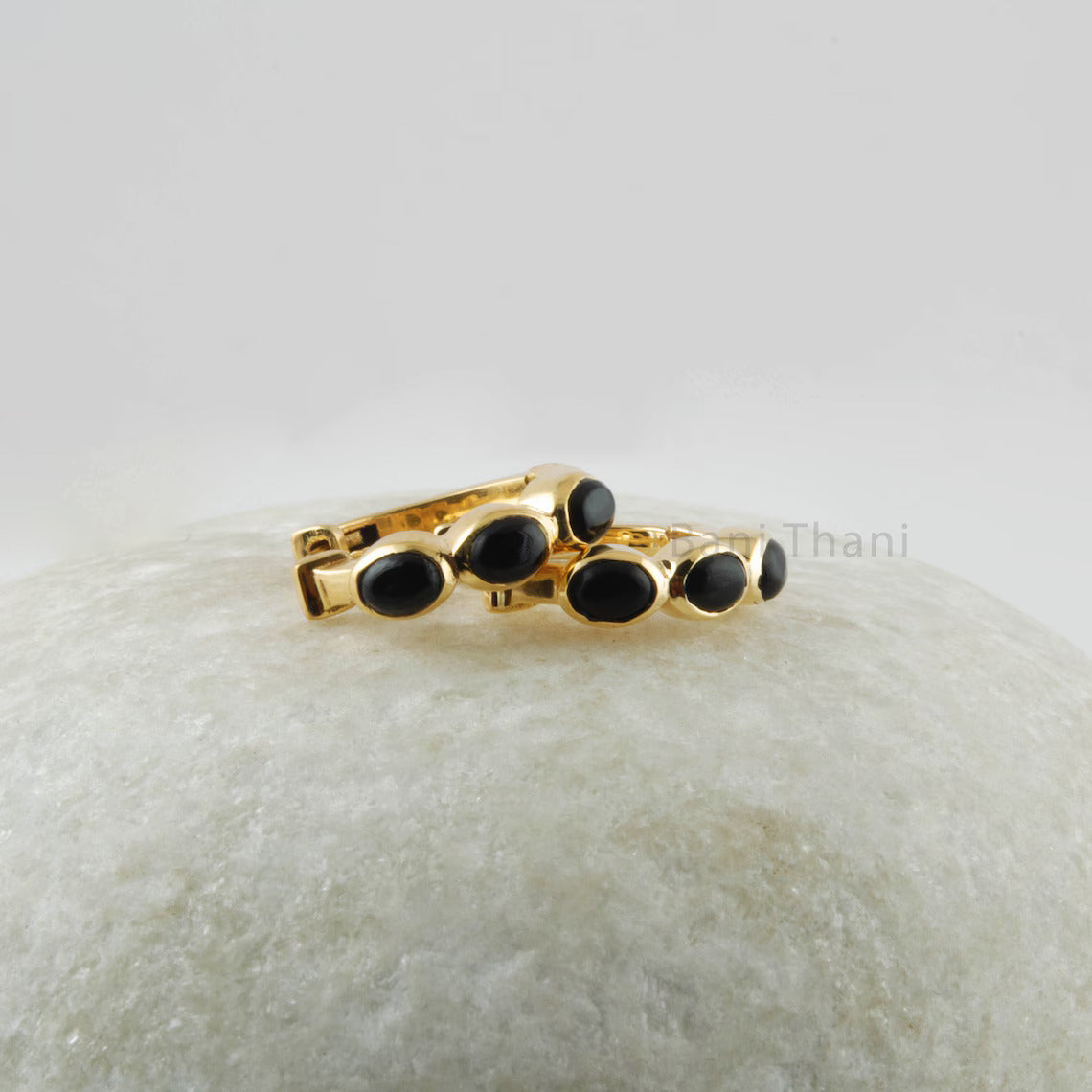 Silver Hoop Earrings, Black Onyx Gemstone Silver Earrings For Women, 18k Gold Plated Bezel Earrings, Anniversary Gift For Wife