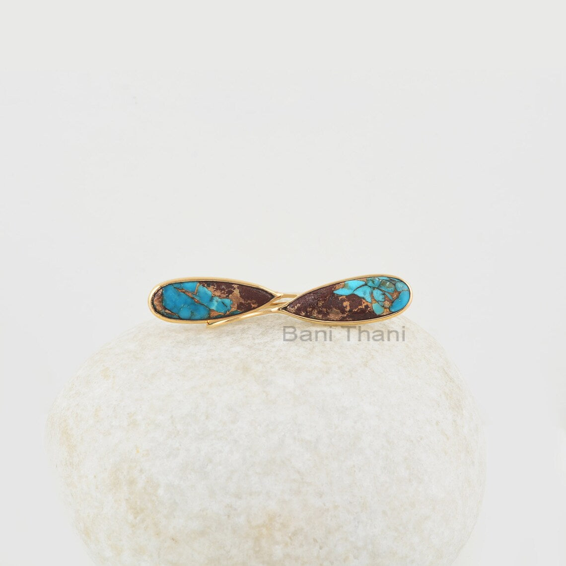 Turquoise Earrings, Lava Copper Turquoise 8x25mm Pear Shape Gemstone Silver Earrings, Gold Micron Bezel Set Long Drop Earrings For Girls