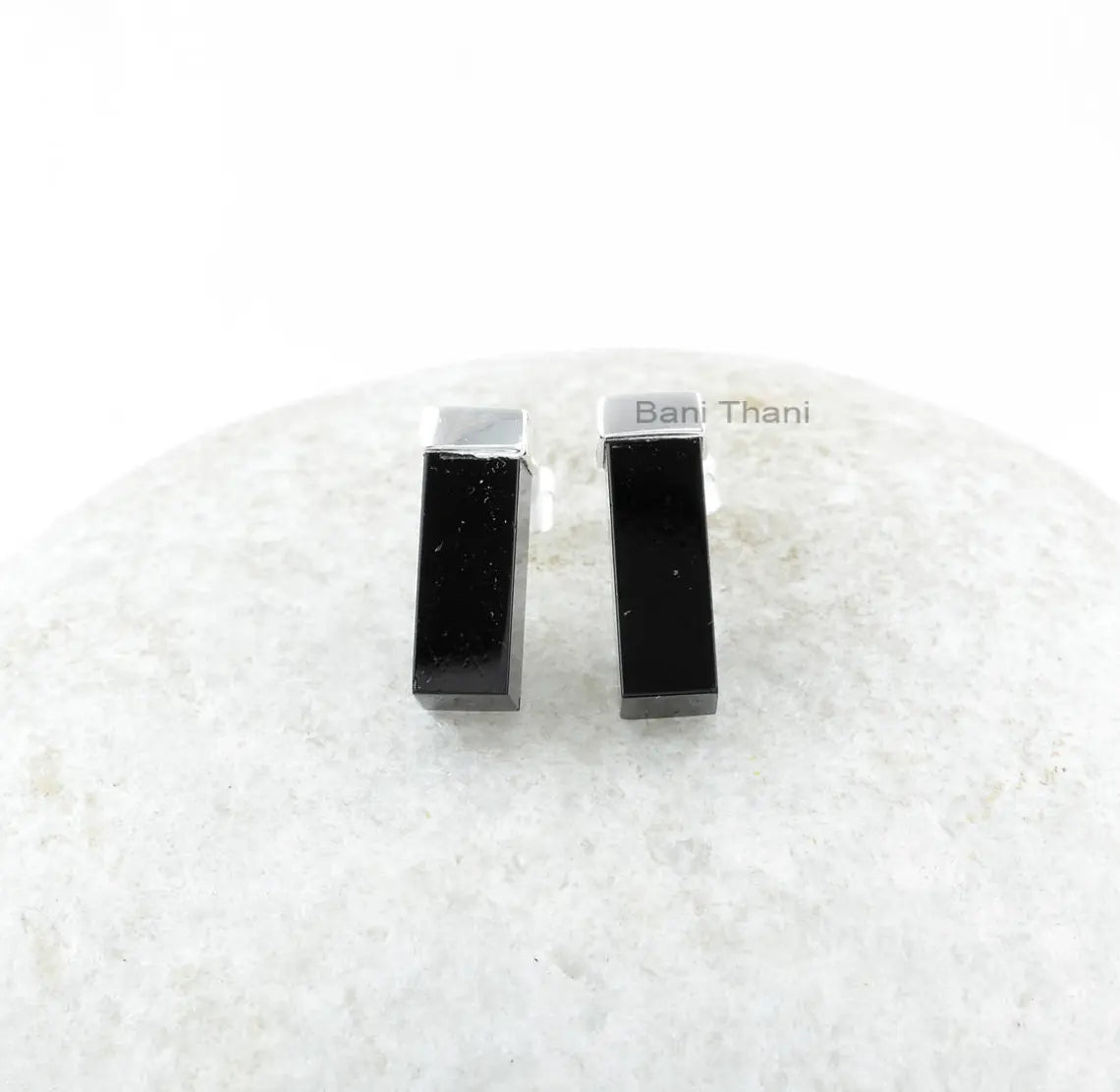 Black Onxy Ring-Black Onyx 5x15mm Rectangle Stud Earrings-925 Sterling Silver Earrings-Stud Earrings-Gift For Her